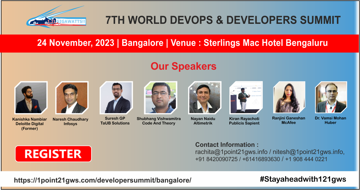 “The 7th World DevOps & Developers Summit, 2023, India” is a Program being curated based on guidelines from industry experts, with a target of about 100+ delegates. Our goal is to bring together bright minds to give insightful talks pertaining to API, DevOps & Architecture, RPA, Cognitive and AI and Testing practice that are solution-focused, and foster learning and inspiration